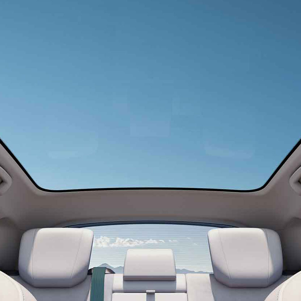 - Additionally, the roof incorporates a 1.44㎡ silver-coated Low-E panoramic glass roof that effectively blocks 99.98% of UV rays.